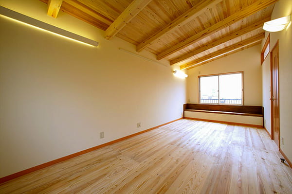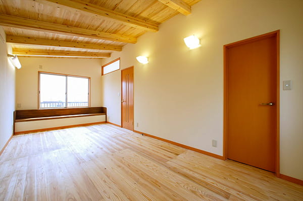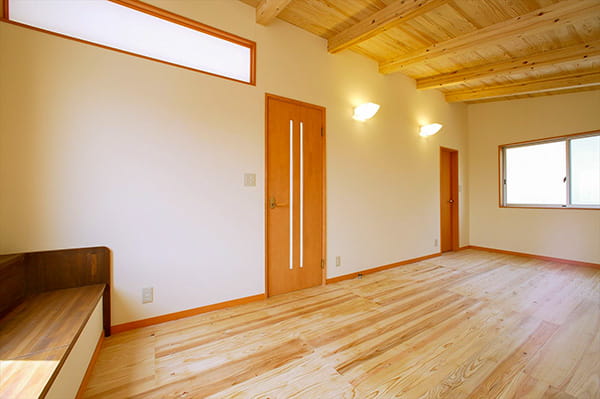 お子様の健康を気遣って、身体に害の少ない自然素材をたっぷりと使った子供部屋は、木のぬくもりたっぷりの心地良い空間になっています。
