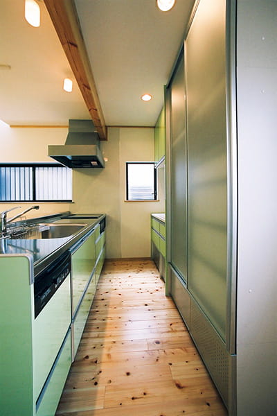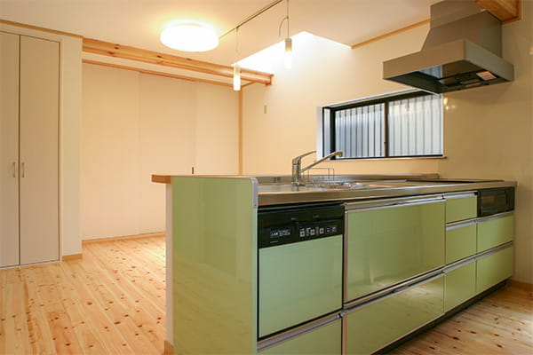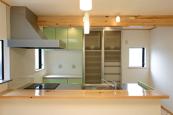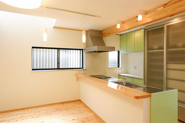 食事をとる時間がご家族でバラバラだというA様ご一家。食事の準備が少しでも楽になるように、対面型キッチンを採用してカウンターでも食事がとれるようにしました。