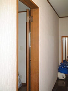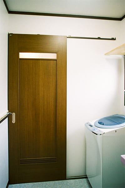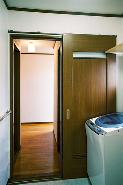 また、洗面脱衣室の建具も引き戸にリフォームしました。これですっきりと使えます。