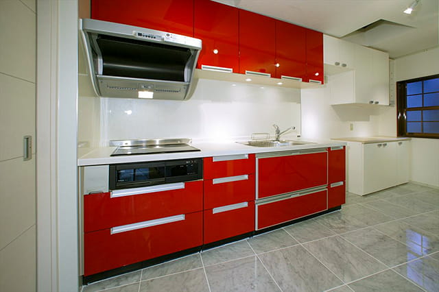 キッチンは真っ赤なシステムキッチンを選ばれました。