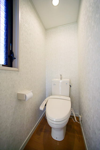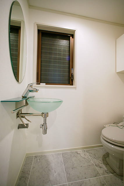 トイレの床もLDKのデザインに合わせて大理石フローリングにしました。 まるで高級ホテルを思わせるようなゴージャスな空間になっています。