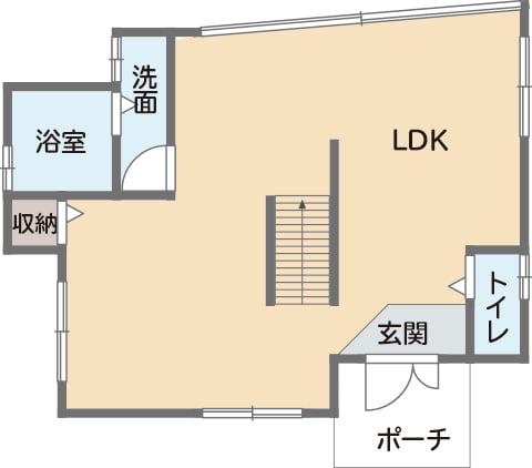 階段が1階の中央にあるため、2つの空間をつなげる工夫が必要でした。