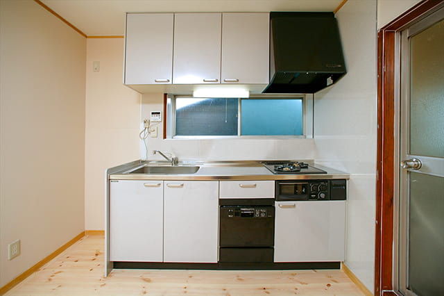 設置スペースの都合上、コンパクトタイプのキッチンですが、使い勝手は良好。 奥様ご希望のビルトイン食器洗い乾燥機も設置しました。