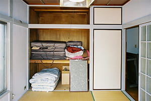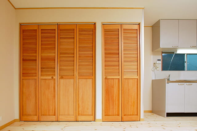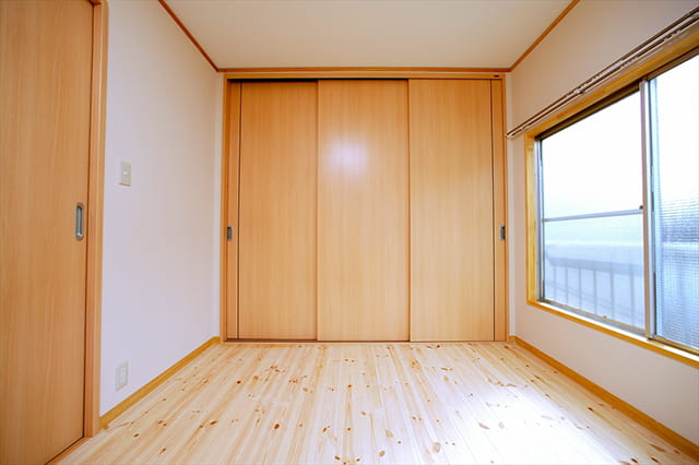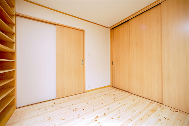 収納は押入れをクローゼットに変え、天然木の建具を設置しました。 3枚引違いの建具なので、開け閉めや物の出し入れが楽に行なえます。
