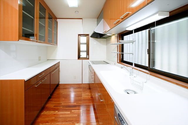 奥様のご意見を参考に、キッチンの使い勝手も改善して、見違えるように素敵な空間を実現します。