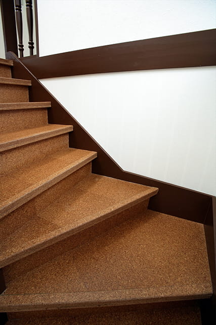 コルクタイルはほんのり温かく、足への負担が少ない上、弾力性もあるのが特徴です。階段の上り下りが楽になりますよ。