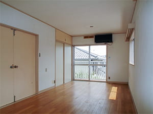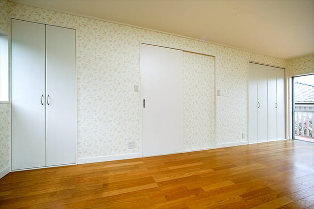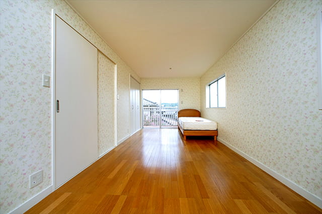 2階の洋室はプライベートルームです。 お部屋の出入り口は引き戸にして、両脇にクローゼットを設けました。