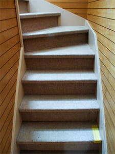 リフォーム前はカーペットが張られていた階段は、コルクタイルにリフォームしました。 既存の階段の上に施工できるのでおすすめです。