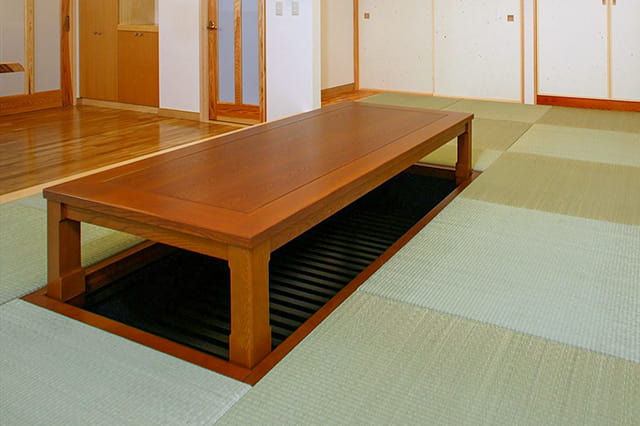 リクエストにお応えして設置した掘りごたつは、畳一枚分のゆったりサイズで、ゆっくりくつろげます。