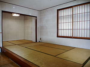 2つの和室の間仕切りを撤去して、広々とした和のリビングが完成しました。 比較的自由に壁を撤去できる鉄骨ビルだからできたリフォームです。