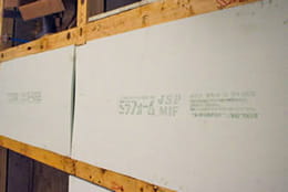 壁の内側から構造用合板を張って補強することで、地震に強い耐力壁となります。