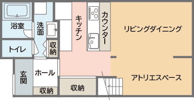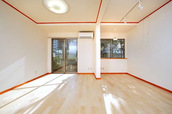 スケルトンリフォームで、店舗スペースをキッチンと水まわりに。残りは広々としたリビングダイニングになります。