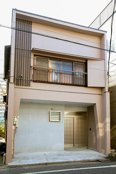 リフォーム後はシャッター部分を壁にして、看板も撤去し、明るいイメージに生まれ変わりました。 2階左側の木の格子はそのまま活かし、素敵なアクセントになっています。