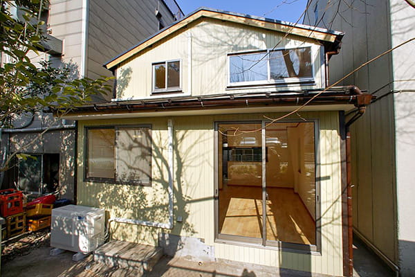 もともと住居部分だった建物の裏側は、時代を感じる外観でしたが、クリーム色のサイディングで明るい雰囲気に変わりました。