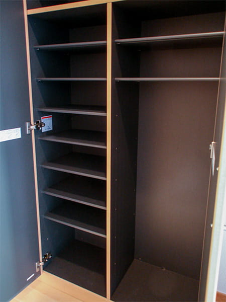 さらに階段上のデッドスペースを活用した奥行きのあるクローゼットも造作しました。