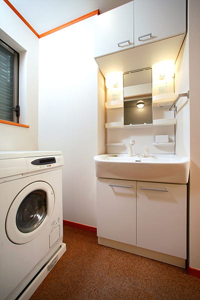 床には、素足で歩くと足の感触が良いコルクタイルを採用しました。 コルクタイルは水にも強く、お掃除も簡単で、水まわりに最適です。