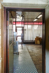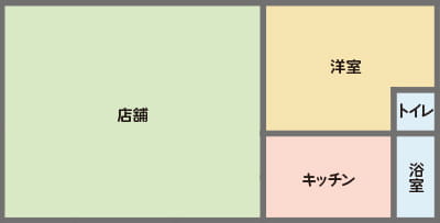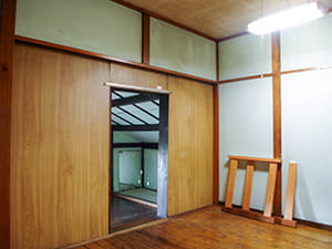 リフォーム前は1階の半分ほどが店舗スペースでした。居住スペースはトイレのある洋室と、ユニットバスを後付けしたキッチンに分かれていました。