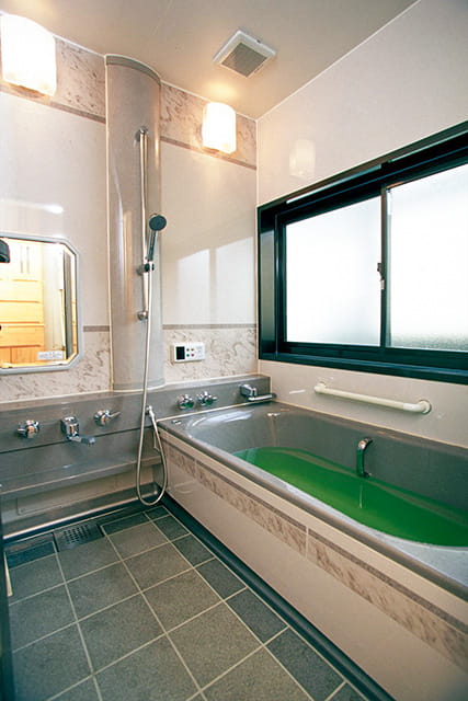 お風呂は冬でも寒くないことを第一に、タカラスタンダードのホーロー製ユニットバスを採用しました。 ホーロー製の浴槽は蓄熱性があり、体の芯までしっかり温まります。