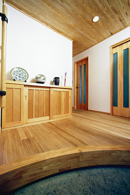 寝室とトイレが暖かくても、廊下が寒くては温度差を解消できません。 壁や床を断熱し、サッシや玄関ドアも断熱性の高いものを採用することで、家のどこにいても寒くないお住まいになりました。