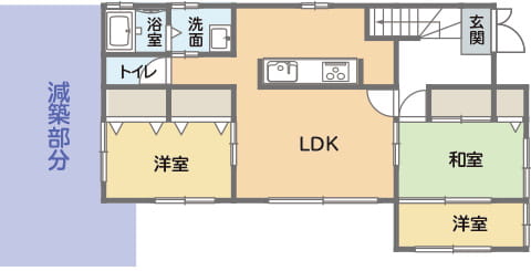 1階は、快適に暮らせるサイズに縮小するために減築を行い、4つあった和室を1つにして、LDKを広く取ります。