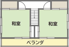 2階は主に荷物置き場として使用するため、2つに分かれていたお部屋を1つにつなげます。家族が増えた時には仕切りをして2部屋にできるように、電気設備などを2箇所設けています。