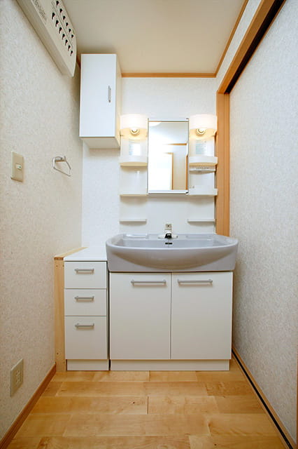 リフォーム前の洗面は昔ながらの雰囲気で、収納スペースがないのが悩みだったそうです。