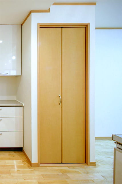 天然木を使って、奥行きのあるクローゼットを2つと、縦長の収納を2つ造作しました。 収納充実でたっぷりしまえます。