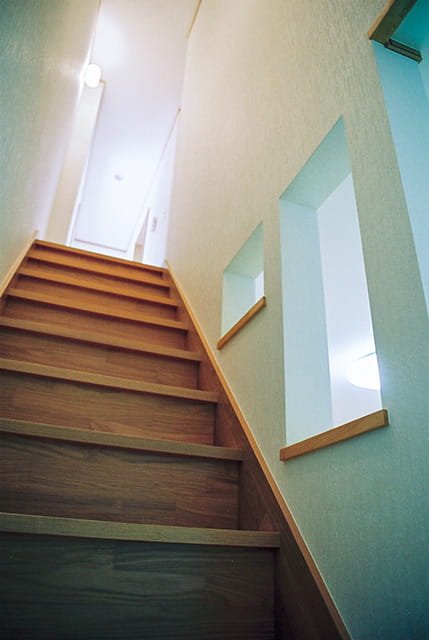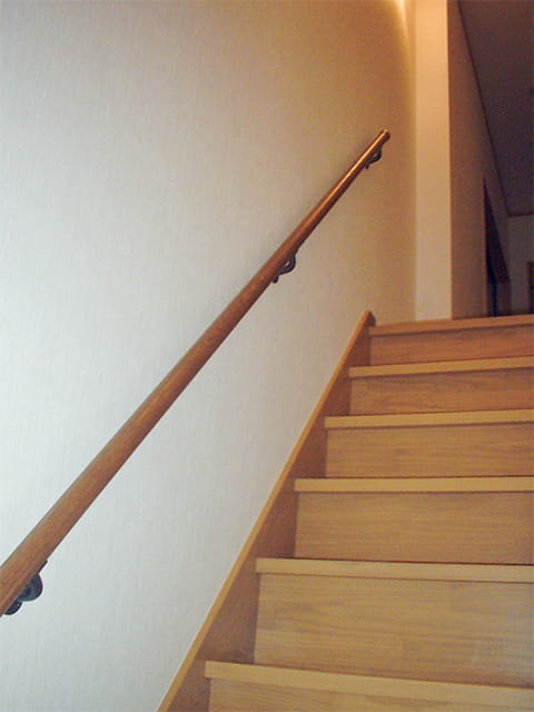 架け替えた階段は、段差がゆるやかになって、安全に上り下りできるようになりました。 新しい真っ白なクロスの効果もあり、明るいイメージになっています。