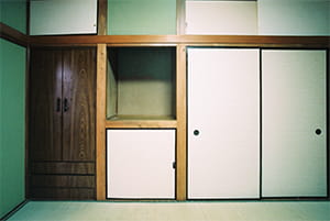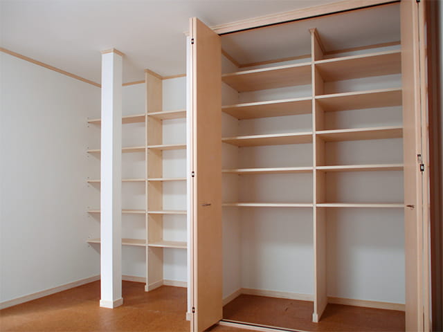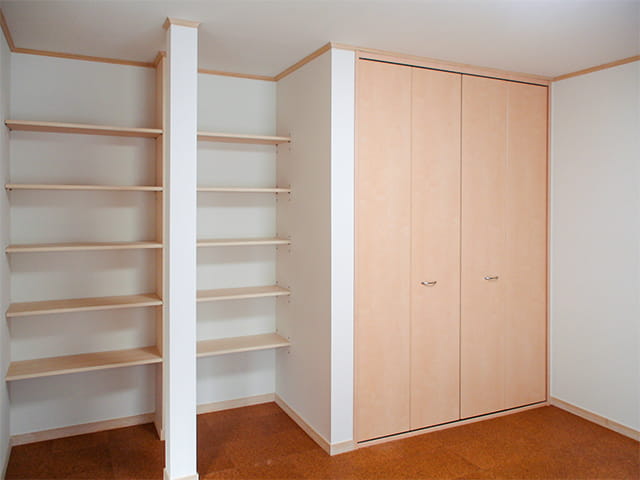 奥行きがあって使いにくかった押入れを解体し、オープン棚とクローゼットに造り替えました。 オープン棚は本棚として、クローゼットはお仕事の機材置き場として使われるそうです。