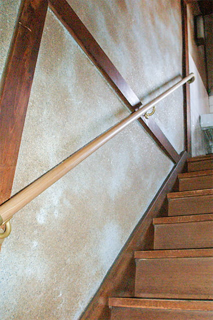 階段にはもともと、ステンレスの手すりが設置されていました。 見た目はシャープでカッコいいステンレスの手すりですが、冬場は金属があまりにも冷たく、しっかり握るのが辛いほどだったそうです。