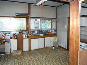 リフォーム前のキッチンは大工さんが造ったもので、お母様の代から大切に使ってこられたそうです。 思い入れのあるキッチンですが、経年による傷みが進み、今回新しくすることになりました。