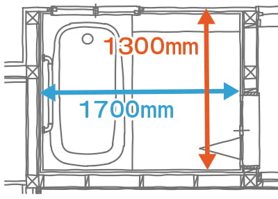 図面上でユニットバスのサイズを見ても、サイズ感はなかなかわからないものです。 現在お使いの浴室と比較するとわかりやすいですが、もともとお風呂がなかったり、変形タイプのお風呂だったりすると、それも難しくなります。