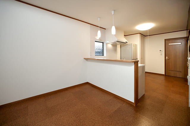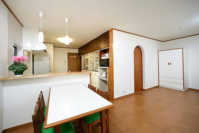 LDKの床の素材としてご提案したのは、コルクタイルです。 床も新しくなって、ガラリとイメージチェンジしました。