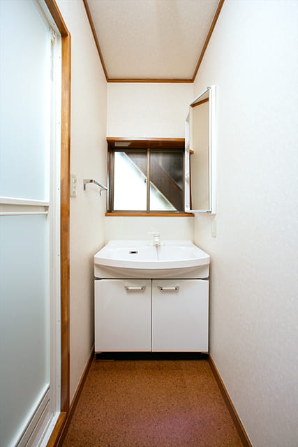 リフォーム前は洗濯機が置かれていたため、ちょっと手狭だった洗面室ですが、リフォーム後は洗濯機を移動して、ゆったり使えるようになりました。