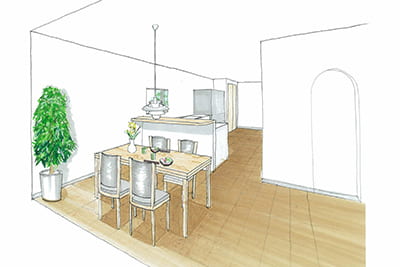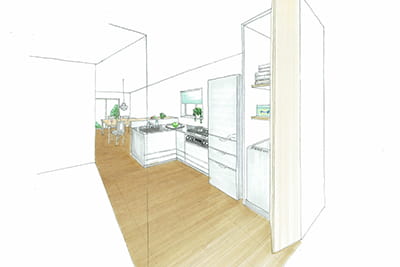 プランご提案時には、イメージをつかんでいただきやすいよう、子供部屋とダイニングキッチン、それぞれの方向から見たパースをご用意しました。 リフォーム完成後は、パースの通りに仕上がっています。