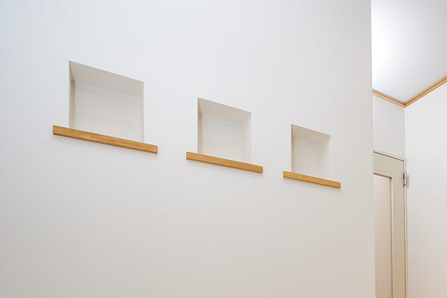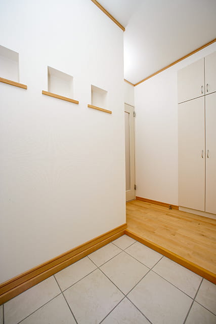 ニッチのサイズや形は、S様ご夫婦と相談しながら決めたものです。 お客様をお迎えする玄関が、いちだんと楽しい雰囲気になりました。
