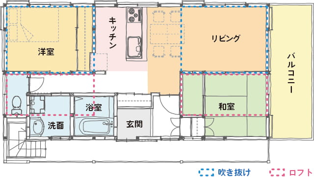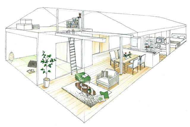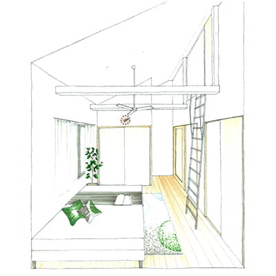 いくつか具体的なご要望をいただいた中で、吹き抜けとロフトは絶対に実現したいとのことでした。