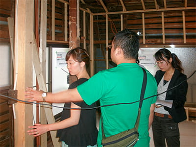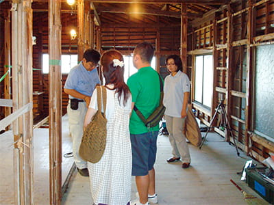 S様にも建物の現状をきちんと報告し、ご理解いただいてから、必要に応じて計画の変更を検討します。 耐震補強した箇所は後から見えなくなってしまうこともあり、透明性のある工事を心がけています。