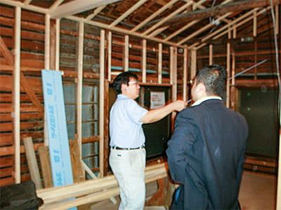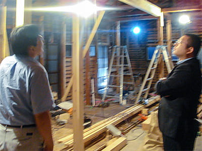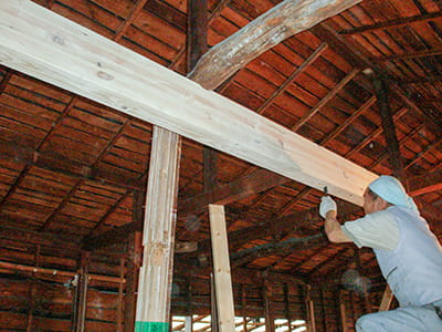 オリジナルのリフォームプランを作成するために、まずは現地調査を行いました。 表から見えない箇所も、点検口などを使って、可能な限り調査していきます。