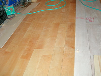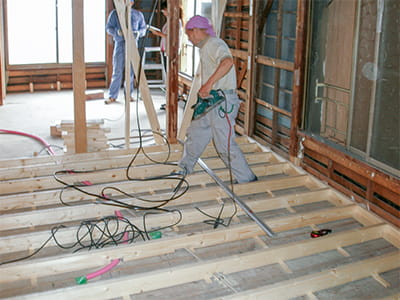 床も下地から全て造り直します。床は水平をきちんと取ることが一番肝心です。その上で、しっかりとした強固な床を造っていきます。