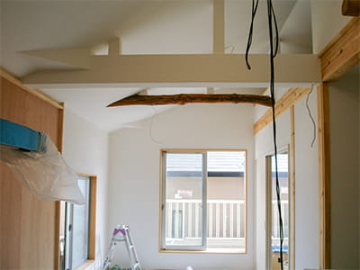 建築当初の立派な梁を、インテリアのアクセントとして見せる仕上げにします。