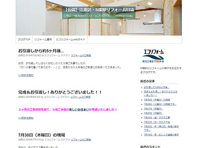 エコリフォームでは、大規模リフォームご契約の方向けに、ID・パスワード制のお客様専用ブログを開設しています。 工事の状況をお伝えすると共に、コメントのやり取りもできるブログです。