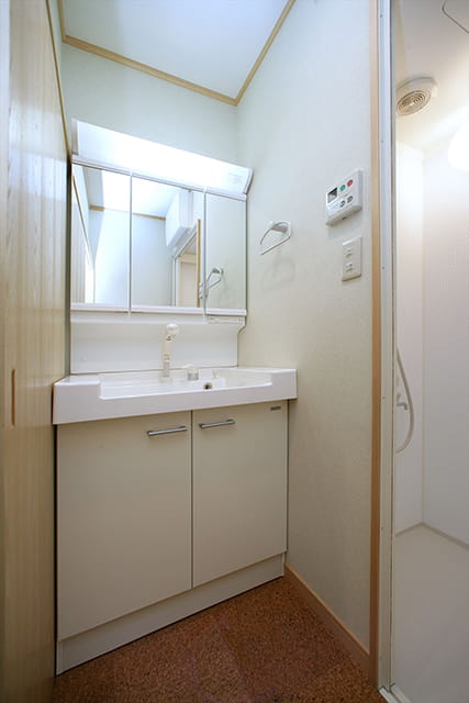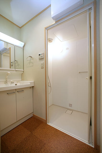 リフォーム前はユニットバスになっていましたが、日本舞踊の稽古場としては、なかなか有効活用できていなかったそうです。 そこで今回、シャワールームにリフォームしました。