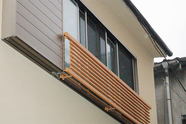 縮小したとは言え、十分な大きさのある窓からは、たっぷり日差しが入ります。 外には横格子の和風な手すりを設置しました。