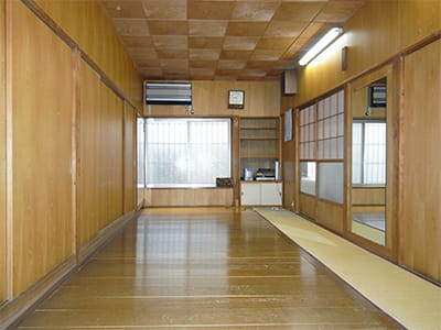 床の下地もかなり傷みが進んでいたため、すべて撤去して新しい下地を造り直しました。 これで安心して使える稽古場となります。