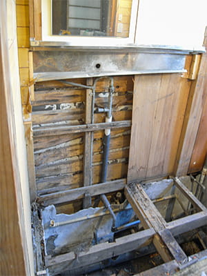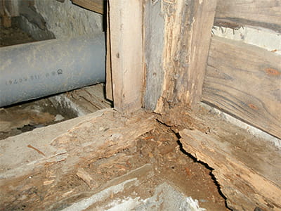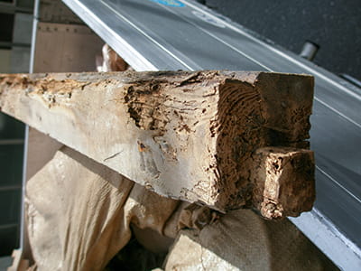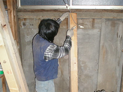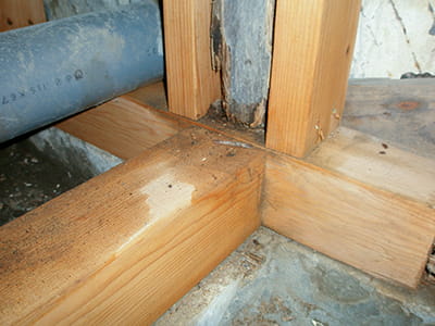 水まわりのシロアリ被害が深刻で、このままでは危険なため、傷んだ箇所の木材を交換してガッチリ補強します。