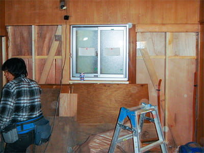 床に断熱材を入れると足音の響きが悪くなるので、日本舞踊の稽古場には適しません。 そこで、窓サッシをペアガラスにして断熱性を上げることにしました。
