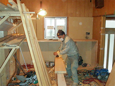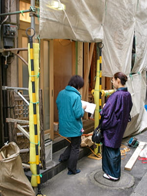 壊してみないとわからない部分があったり、解体後に問題が判明したりと、技術面では苦労もありましたが、建築士の塩谷と大工の石田、コーディネーターの千葉の3人で、最良の施工方針を検討しながら工事を進めました。 現場で詳しくご説明するために、K様には何度も現場にご足労いただきましたね。
