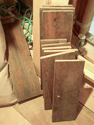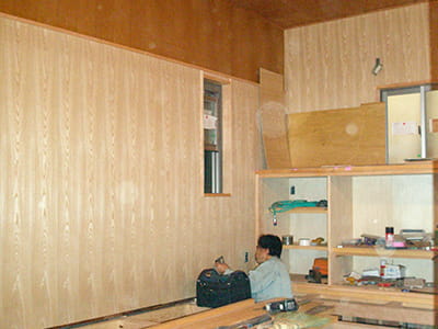 また、古い床板をきれいに磨き、収納の中板として再利用する計画です。
