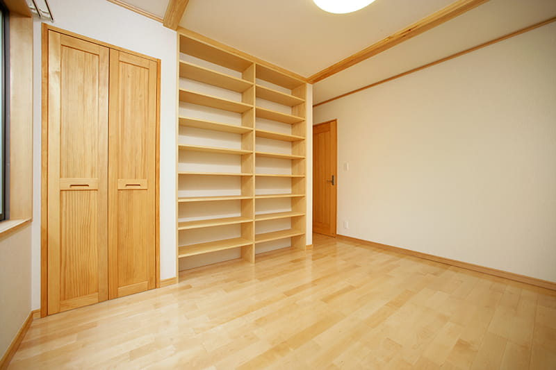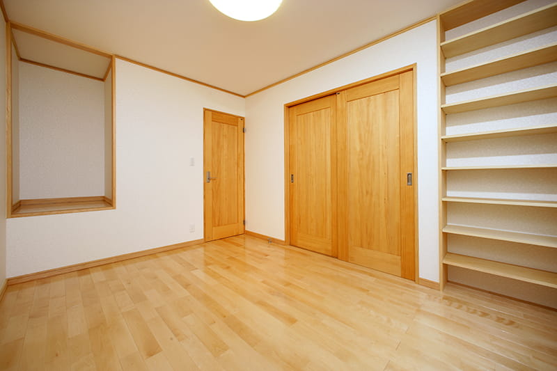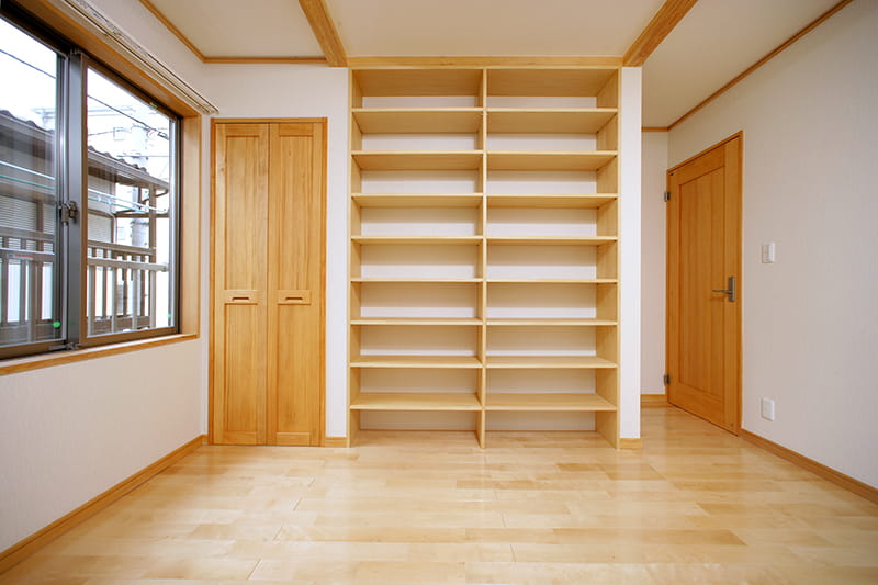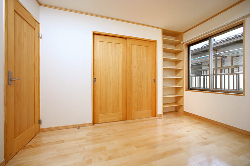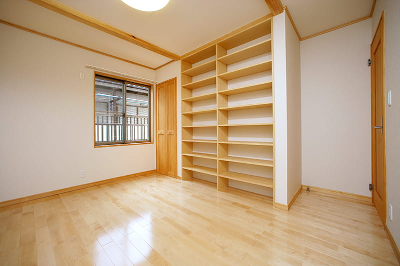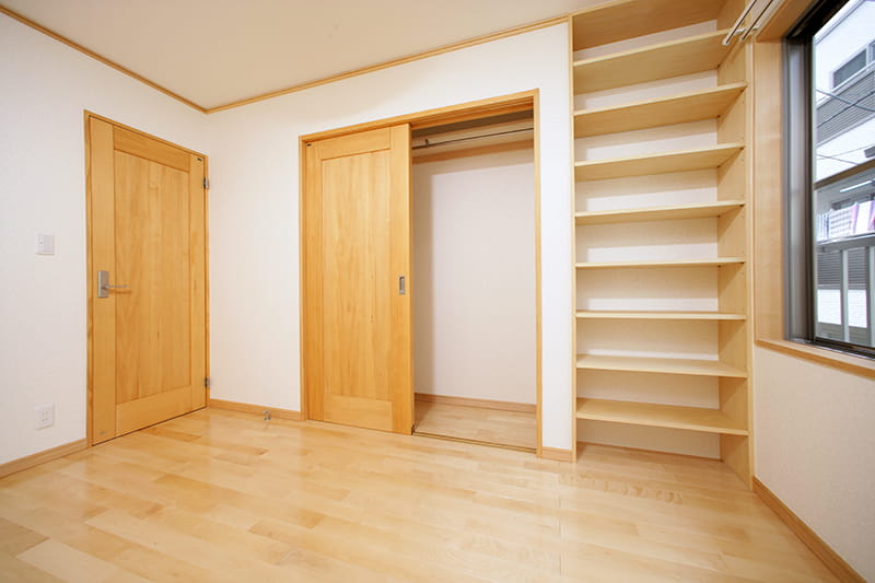 奥様が使われる洋室3には、扉のない収納スペースを設けました。 お持ちのタンスを置いたり、オープンなクローゼットとして使ったり、自由に活用できます。